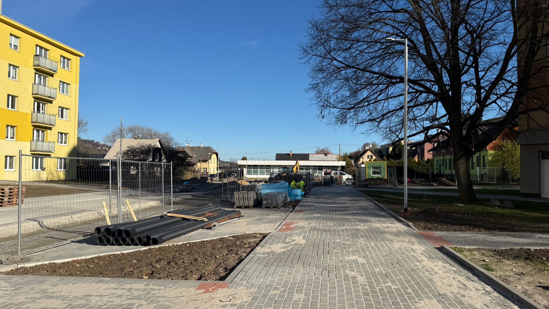 V listopadu by měla být dokončena parkovací místa a proběhne také pokládka nové dlažby. Pokud to počasí dovolí, dojde i k položení asfaltového povrchu vozovky v úseku od potravin k prádelně. Zároveň by mohla zmizet další část starého chodníku.
